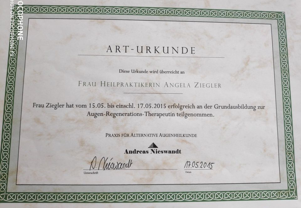 Seit Jahren führe ich mit Erfolg in meiner Naturheilpraxis die Augenakupunktur bei Augenerkrankungen nach der Methode von Prof. Dr. Boel und die ART nach Andreas Nieswandt durch.