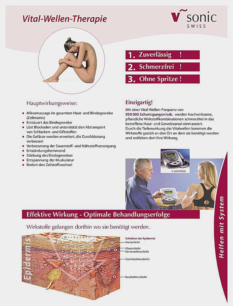 Die besondere Wirkweise der Vital-Wellen-Therapie entsteht durch die Kombination von Ultraschallfrequenzen mit qualitativ hochwertigen und wissenschaftlich erprobten pflanzlichen Wirkstoffkombinationen.